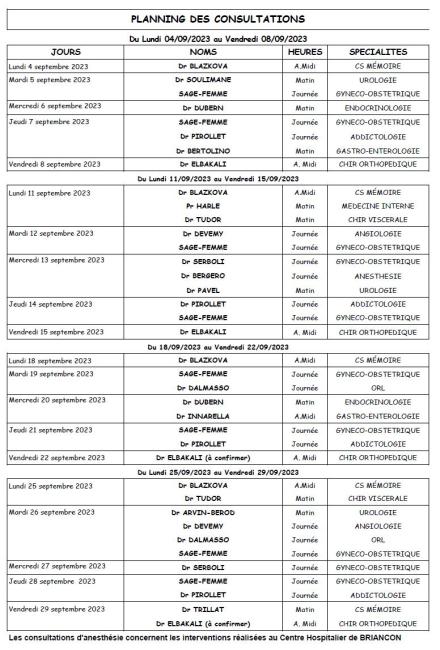 📌 Tous les mois, retrouvez le planning des consultations des spécialistes présents au Centre Hospitalier d'Embrun. Le Centre hospitalier d'Embrun vous propose ...